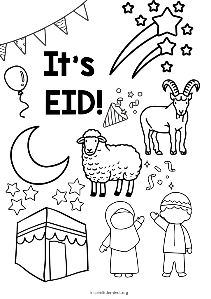 We’ve also included a free Eid al-Adha colouring page [link below]. It’s a great way to start a conversation at home about different holidays and the importance of community and generosity.