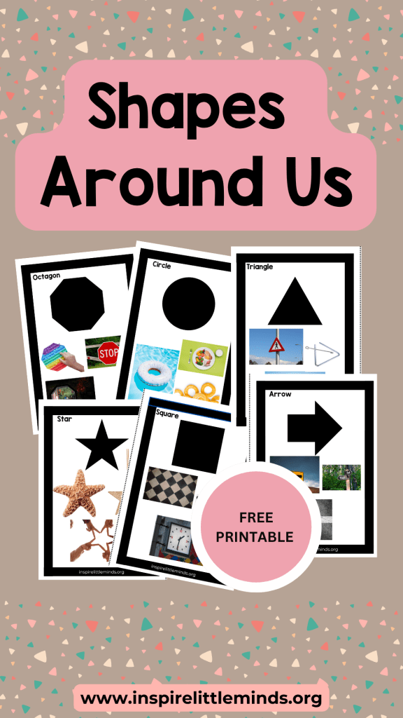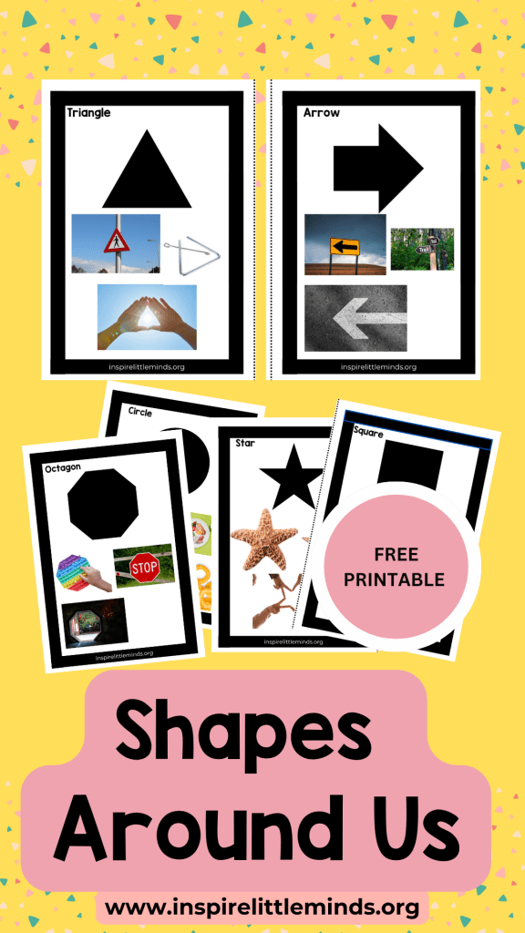 To support your shape lessons, I’ve created a set of free printable flashcards featuring real-life images of common shapes like circles, squares, triangles, rectangles, and more!