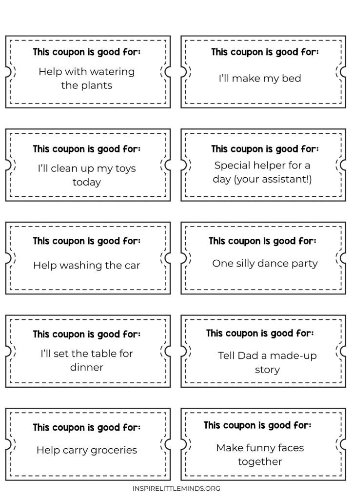 - Let kids choose 3 coupons to give on Father’s Day morning