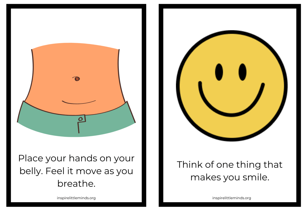 These cards include easy activities such as breathing, stretching, and thinking about happy moments — all designed to be developmentally appropriate and fun.