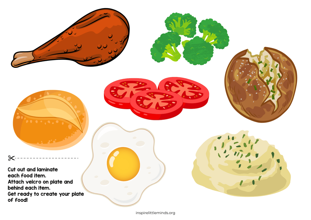 - Social-Emotional Learning – Discuss gratitude: “I’m thankful for…” as they fill their plate.