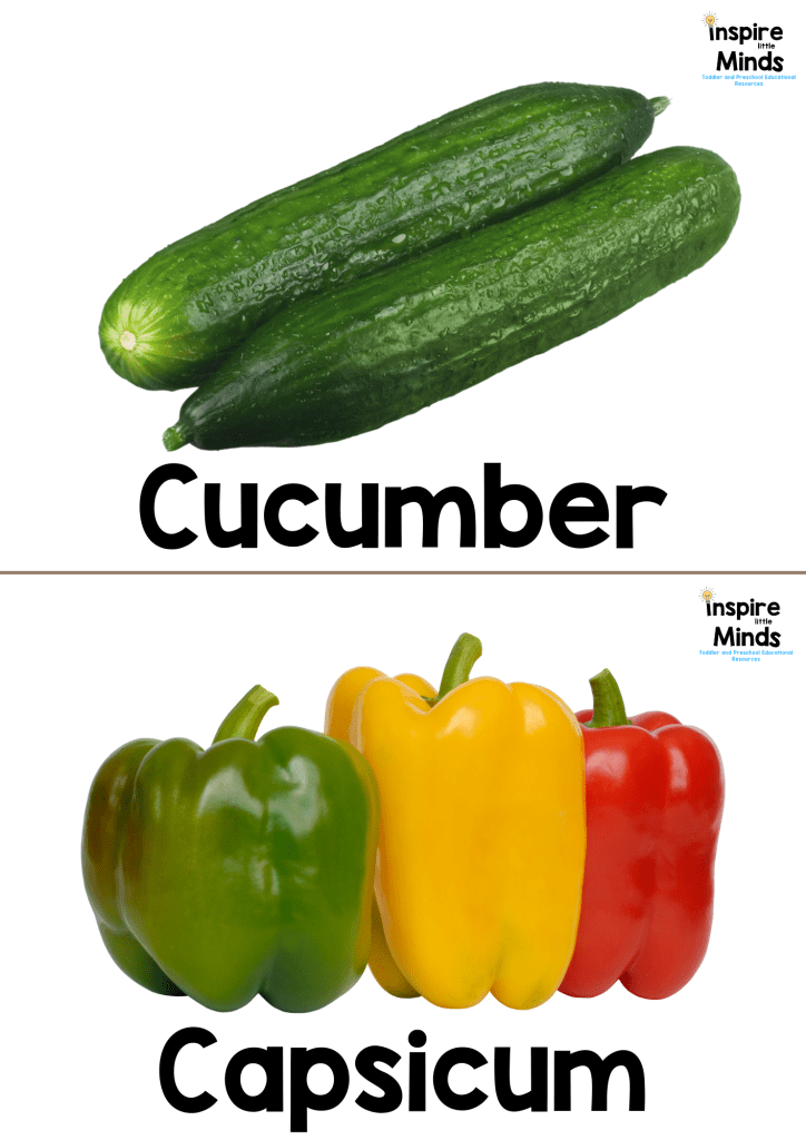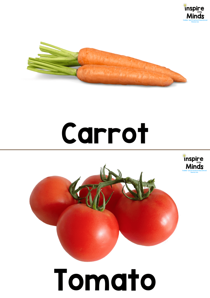- Matching Game – Match the flashcards with toy or real vegetables for hands-on learning.